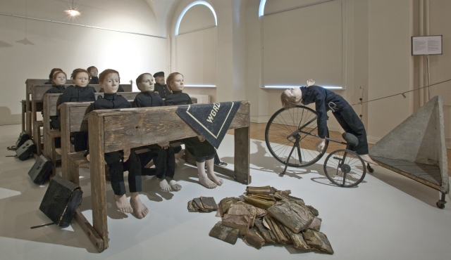 در جايی از پرده ی اول، دانش آموزان كه همه بزرگسال هستند، از روی صحنه خارج ميشوند، اما كمی بعد تر با مجسمه های كودكان بر پشتشان وارد ميشوند. مجسمه های مومی همگی نماد انسان بی روح اند، در حاليكه بر پشت انسان های ديگر، كه بزرگسالی آنها هستند، حمل ميشوند. در طول اجرا، دانش آموزان بسياری به كلاس وارد ميشوند كه ابتدا آنجا نبوده اند. كانتور با اين كار تلاش ميكند مفهوم بي معنای حضور و غياب در مدرسه را به تصوير در آورد. حتی در ابتدای نمايش هم، هنگامی كه معلم حضور و غياب ميكند، شاگردان او با دو انگشت (به حالت پيروزي) اعلام حضور ميكنند. اگرچه يكی از شاگردان، در عين حضور فيزيكی، غایب است و بايد دستش را به زور بلند كنند. اين پر و خالی شدن تا آنجايی ادامه می يابد كه كلاس به خرابه ای بدل ميشود و دانش آموزان بزرگسال (كه كودكان مومی را بر پشت خود حمل ميكنند) از فضای كلاس دور شده و به دل طبيعت پناه ميبرند.